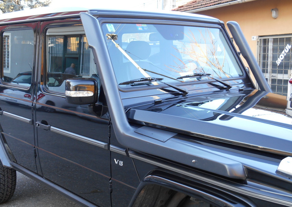 Non capita tutti i giorni di poter lavorare su un pezzo di storia del fuoristrada così bello! Pretendere di stravolgerlo da capo a piedi sarebbe forse chiedere troppo, ma il risultato è senza alcun dubbio di grande effetto! Uno snorkel dedicato ad ogni bancata poiché stiamo parlando di un motore V8, un buon assetto rinforzato, distanziali per allargare la carreggiata e un nuovo impianto di scarico rendono questa Mercedes G400 notevolmente più performante rispetto a prima.